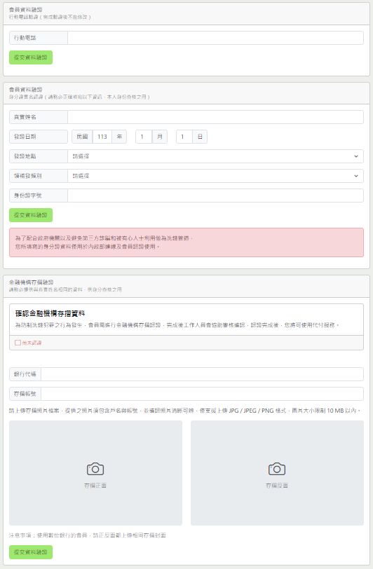 - 第三類實名驗證等級使用額度:一年二十萬RMB。