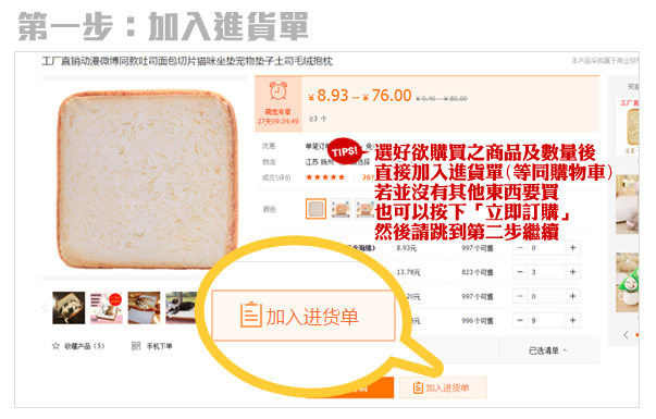 您必須先於淘寶或1688開通您的會員帳號〈任一網站註冊完畢,支付寶帳號即會同步開通〉,開通後,您可於淘寶、1688下單,並透過支付寶提出代付申請,請留意支付寶官方限制一個帳號一天只能申請10次代付(包含取消)、合併代付不得超過2萬人民幣,相關規定以支付寶官方說明為準,可能隨時變動,若有疑慮請您聯繫支付寶客服。 -